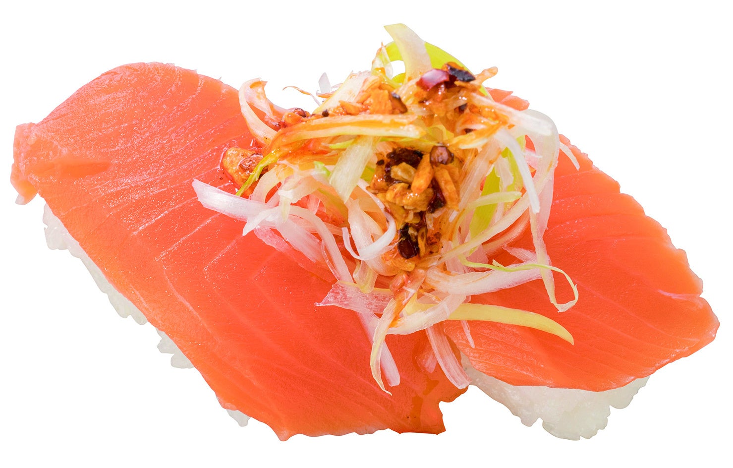 サーモンねぎラー油/2貫120円(税込)