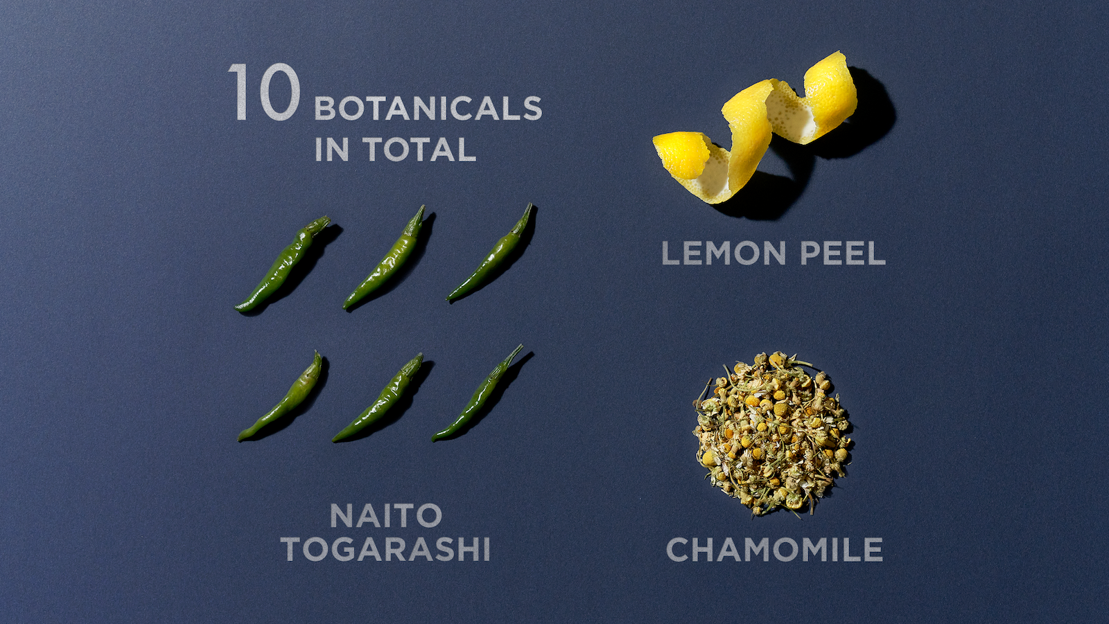 新宿区伝統野菜「内藤とうがらし」の青唐辛子をふんだんに使い、青々しいスパイシーな香りを表現しました。その他のボタニカルには、レモン、カモミール、ブラックペッパーなどを使い、ジュニパーベリーも多めに使うことで香りを強く引き出しました。