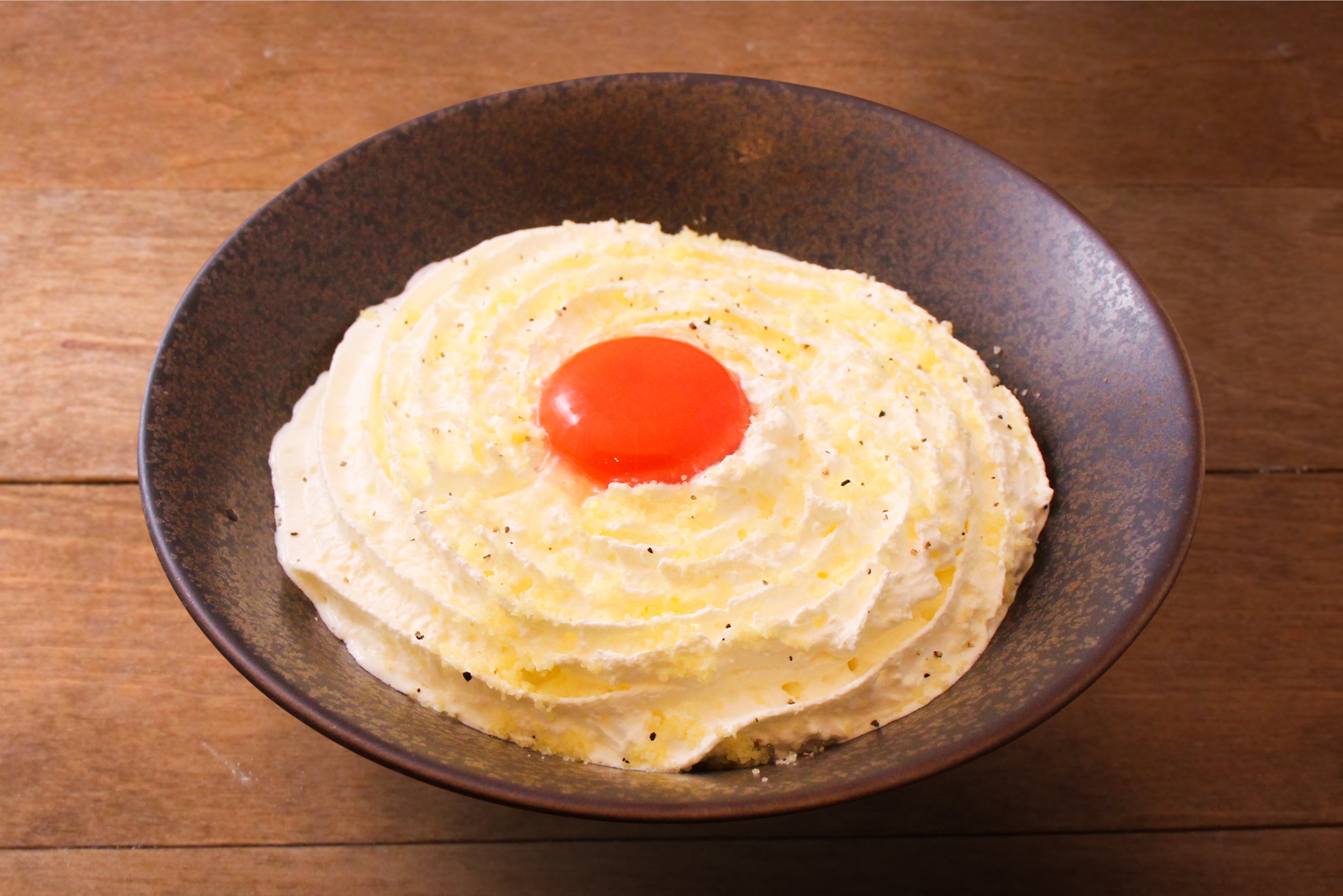 濃厚な卵黄、粉チーズ、カルボナーラソースとクリームが
