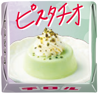 ピスタチオ風味チョコでピスタチオクリームを包みました。玉砕ピスタチオ入りでつぶつぶ食感が楽しめます。