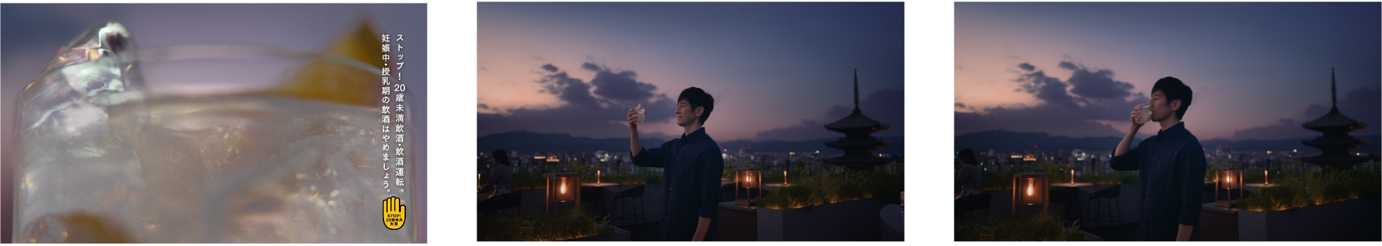 いくシーンから始まります。日本が世界に誇る京都の絶景をバックに、西島さんは愛おしそうに「麒麟百年」を