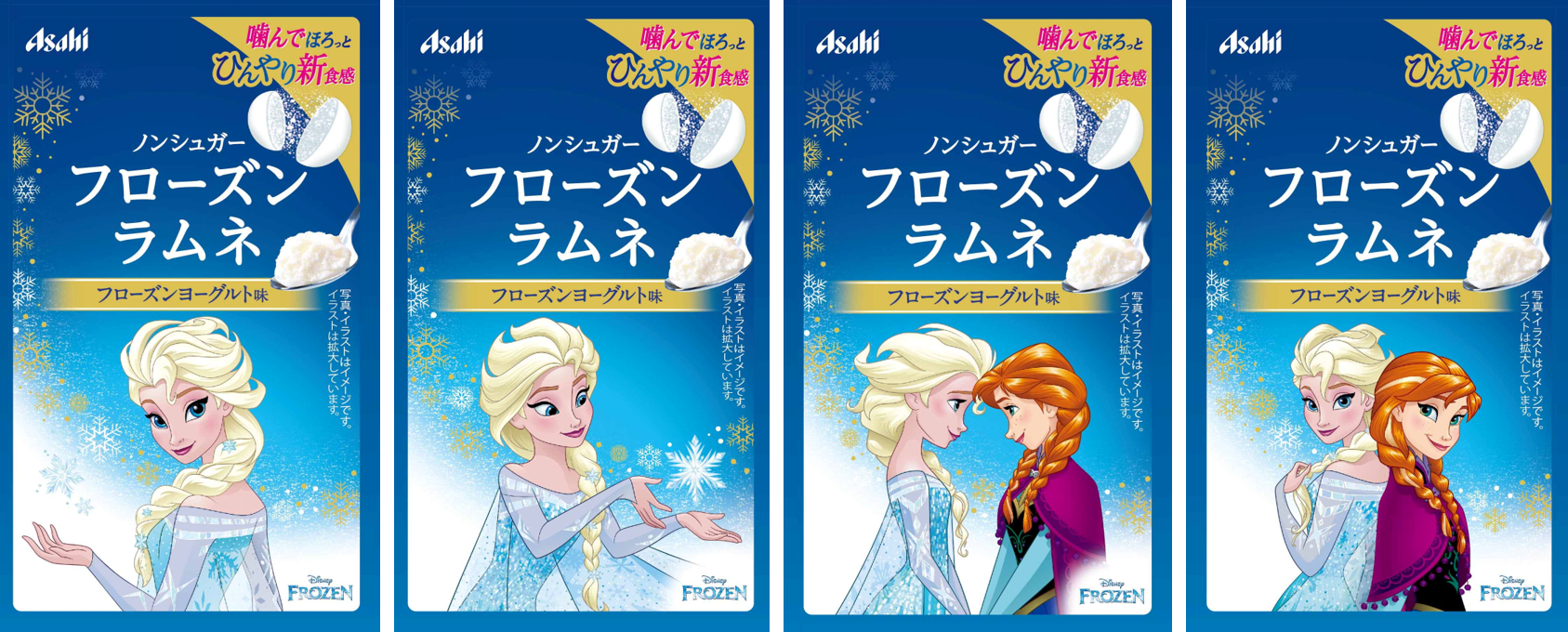 ・「アナと雪の女王」のキャラクターであるエルサとアナをデザインした全4種類のパッケージです。裏面にはオラフもデザインしています。
