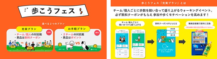 そこで、従業員の健康促進やストレス解消、コミュニケーション活性化などを目的に、健康経営施策の一環として多くの企業に採用されているウォーキングイベントを、“手間なく”実施できる「SUNTORY+」のサービス「歩こうフェス」のさらなる拡充を目指し、「歩こうフェス充実プラン」の提供を開始します。