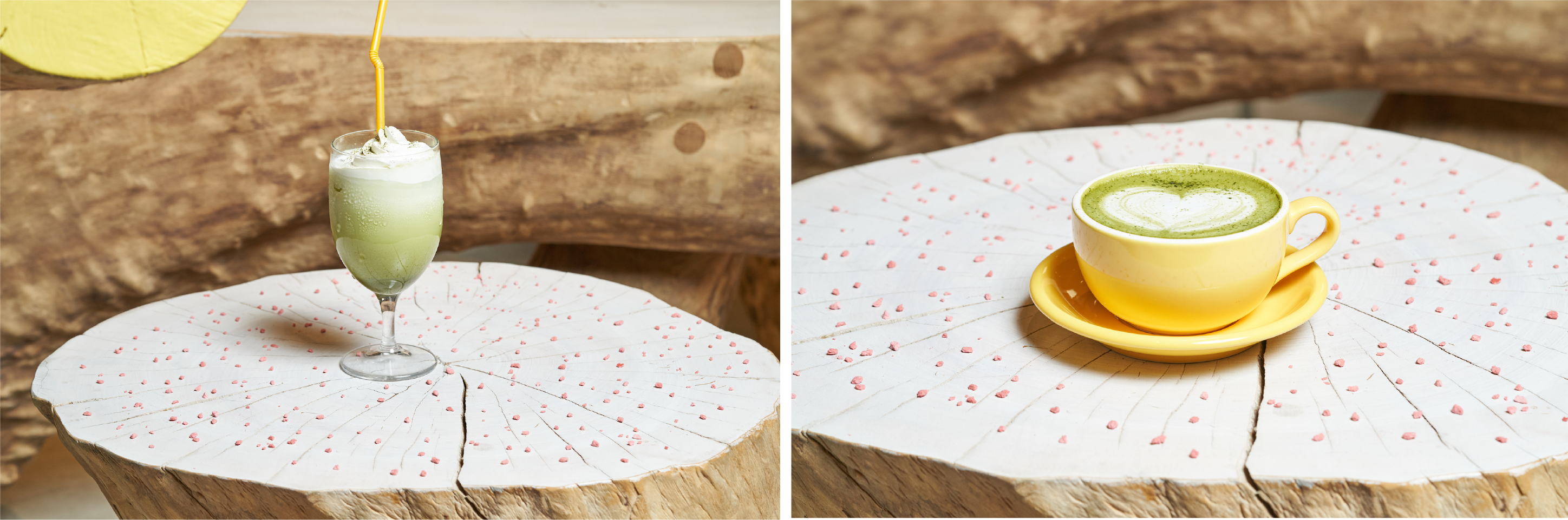 右上:<抹茶ラテ(HOT/ICE)>650円