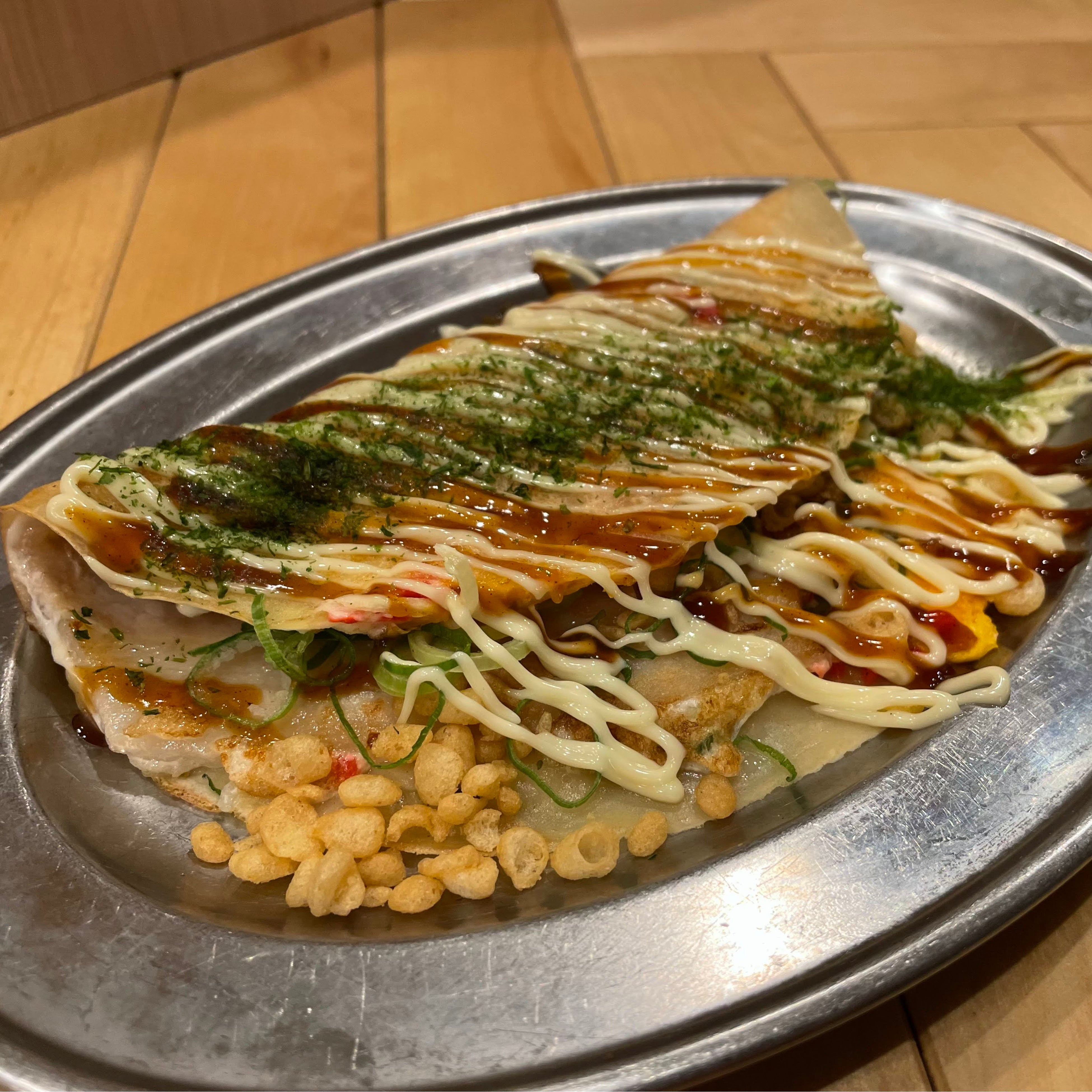 究極のシンプル具材を使用した、お好み焼きの元祖と言われている「一銭焼」。 駄菓子屋さんで小腹を満たしたあの日を思い起こさせる一品です。 ソースはたっぷりの野菜をベースにした甘めのソースを使用し、お子様にも嬉しい味です。