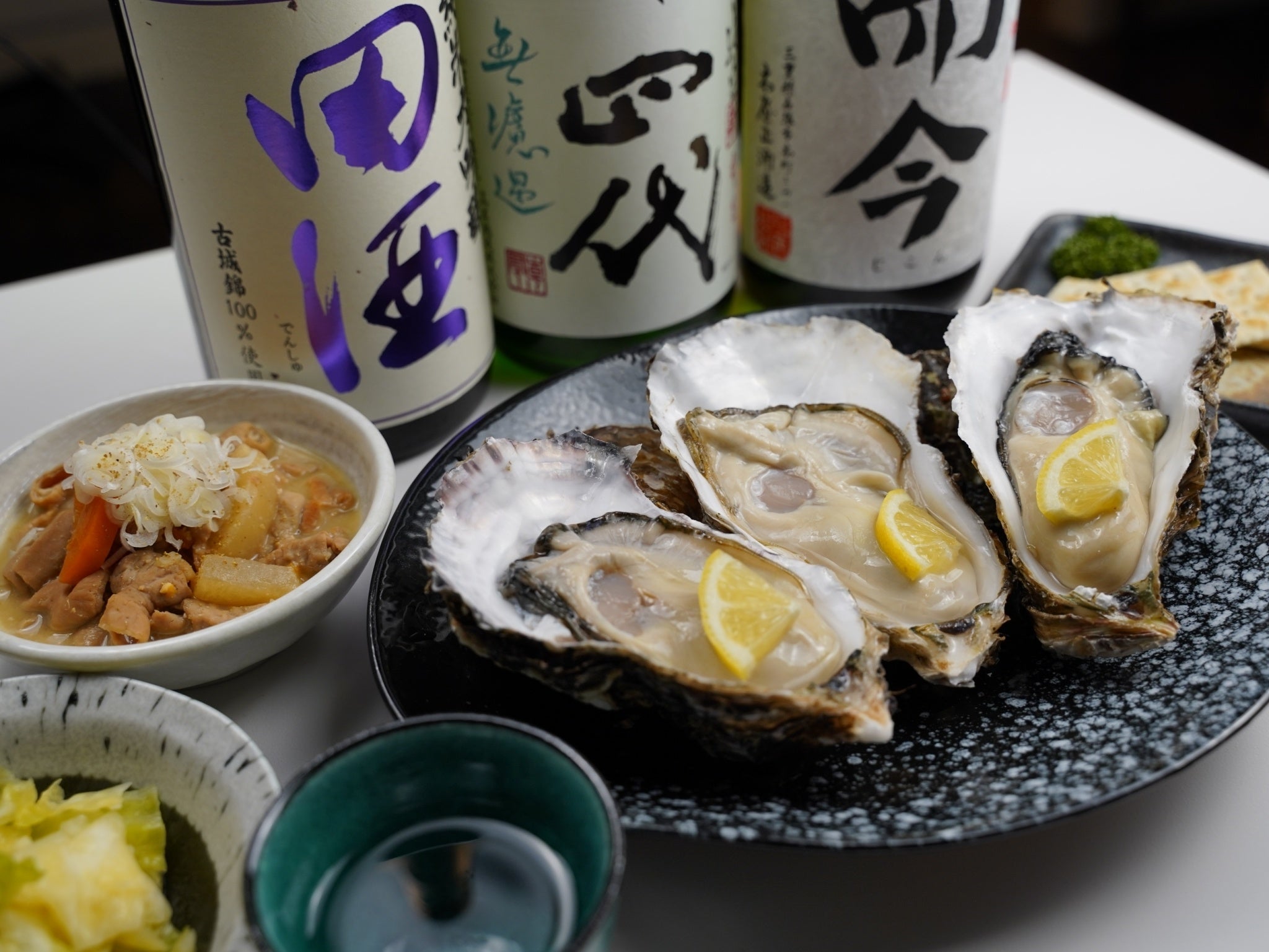 料理は牡蠣をメインに日本酒に合うつまみを用意