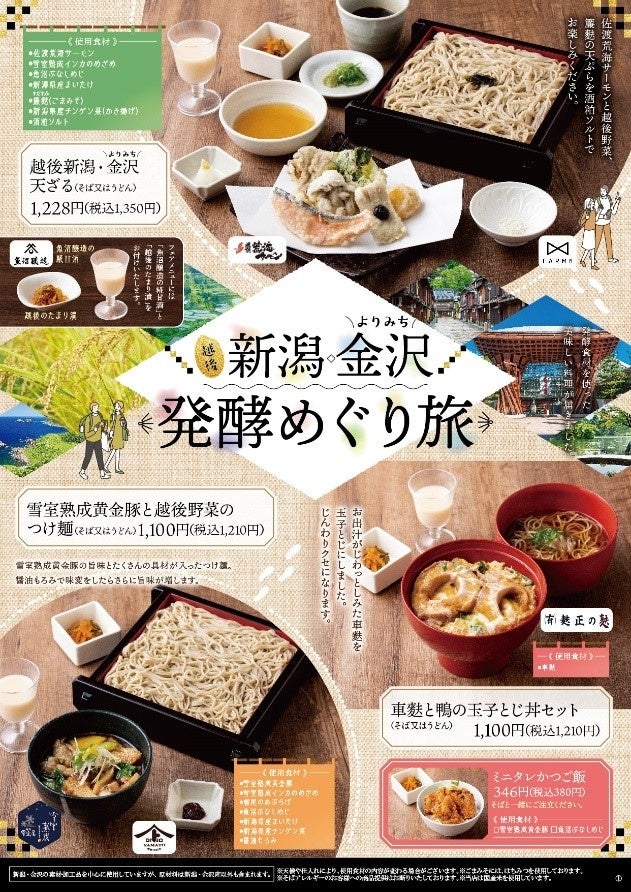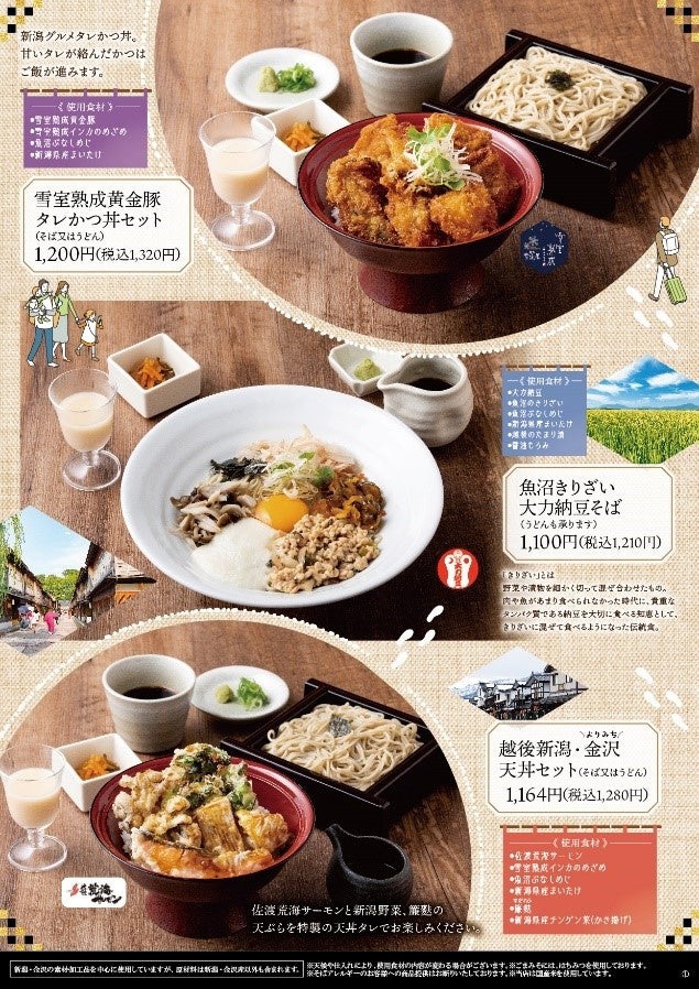 ~越後新潟・よりみち金沢天ざるそば、雪室熟成黄金豚タレかつ丼セット、魚沼きりざい大力納豆そばなど越後新潟と金沢の食材や発酵食品を味わえる商品を4/3~5/31の期間限定で販売。~