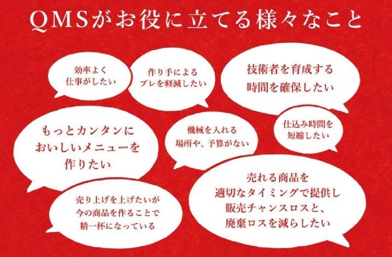 QMSは、おいしいことと、扱いやすいことにとことんこだわり、お店独自の商品づくりを、そして、生産効率UPや廃棄ロス低減等でマイスターをサポートいたします。
