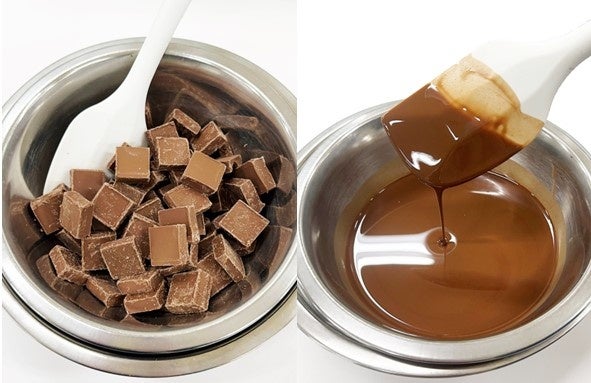通常のコーティングチョコレートより低粘度ですので、素材にしっかり染み込みます。