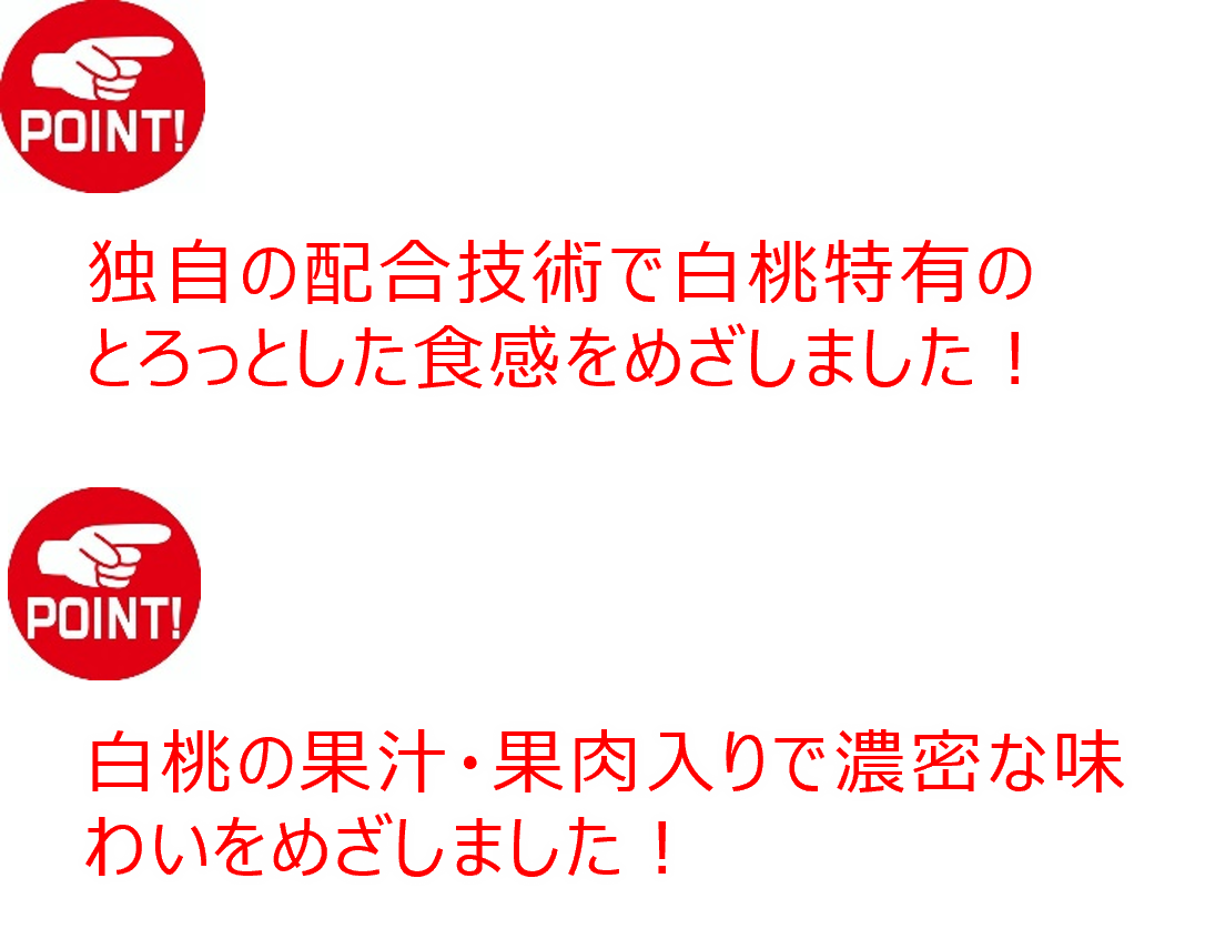 - 白桃特有のとろっとした食感で、濃密な味わいが楽しめます。