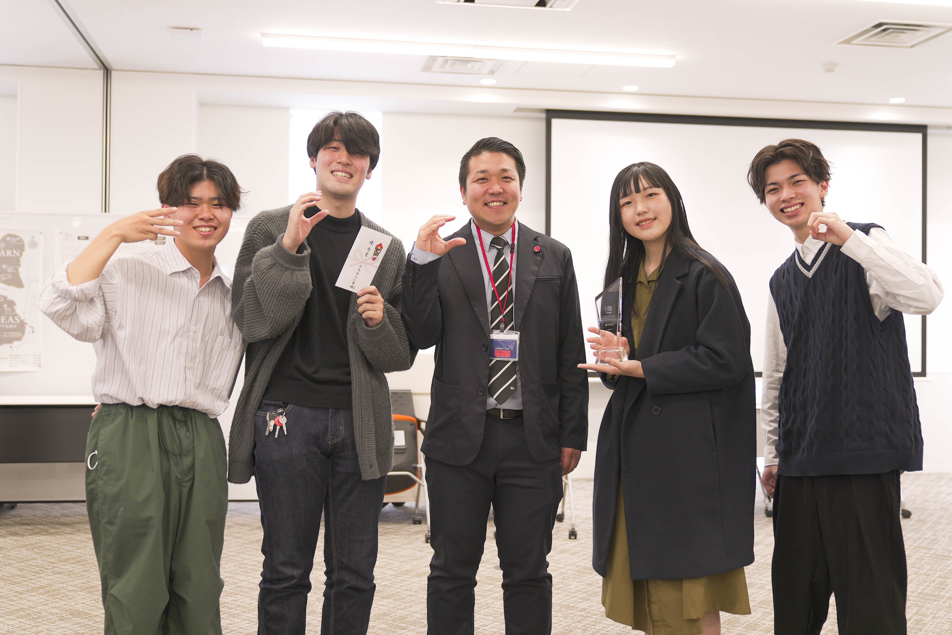 3月29日には、6チームそれぞれが、こんにゃくを活用した自らのビジネスアイデアを発表(1チーム10分・質疑応答5分)。EOメンバーである5名の社長たちが審査員を務め、学生たちのプレゼンテーションに耳を傾けました。