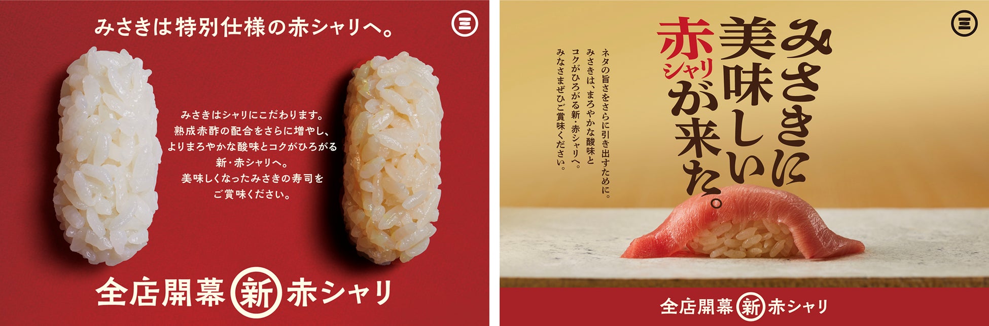 「回転寿司みさき」では、2023年3月から“赤シャリ”をリニューアルいたしました。赤酢を合わせたシャリのことをいう“赤シャリ”は、ネタの旨味を引き出し、寿司の旨さを決める重要な要素です。今回のリニューアルでは、2年間じっくりと熟成させた酒粕を原料とした赤酢の割合を増やし、まろやかな酸味とコク・風味を感じられるように独自の酢の配合を行ったこだわりの“新・赤シャリ”でご提供をしています。4月4日(火)から開催する『北海道旨いものフェア』でご提供するネタとも、“新・赤シャリ”は相性が抜群です。ぜひ、この期間限定で味わえる“北海道の旨いもの”をご賞味ください。