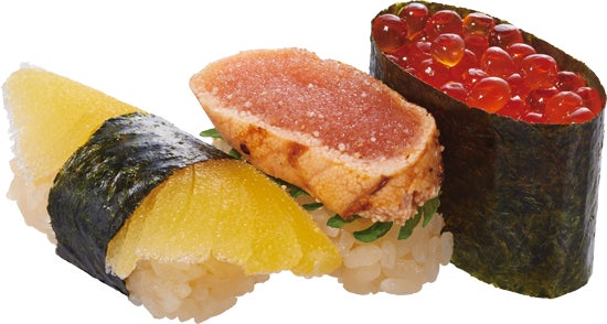 今回のフェアでは北海道産のこだわりの天然ネタをお客様に心ゆくまでご堪能いただきたく、「いくら醤油漬け軍艦」をはじめとして「真いわし」や「羅臼産真いか」、「つぶ貝」など10種以上の商品をご用意いたしました。