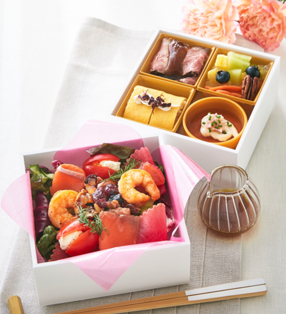① 母の日の華やぎ 海老とサーモンのブーケSalad bento 1パック ¥3,100 1人前