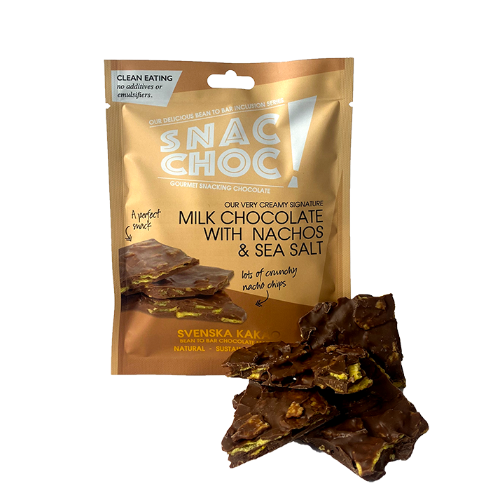Bean to Barミルクチョコレートにデンマーク製のナチョスとシーソルトを加えました。