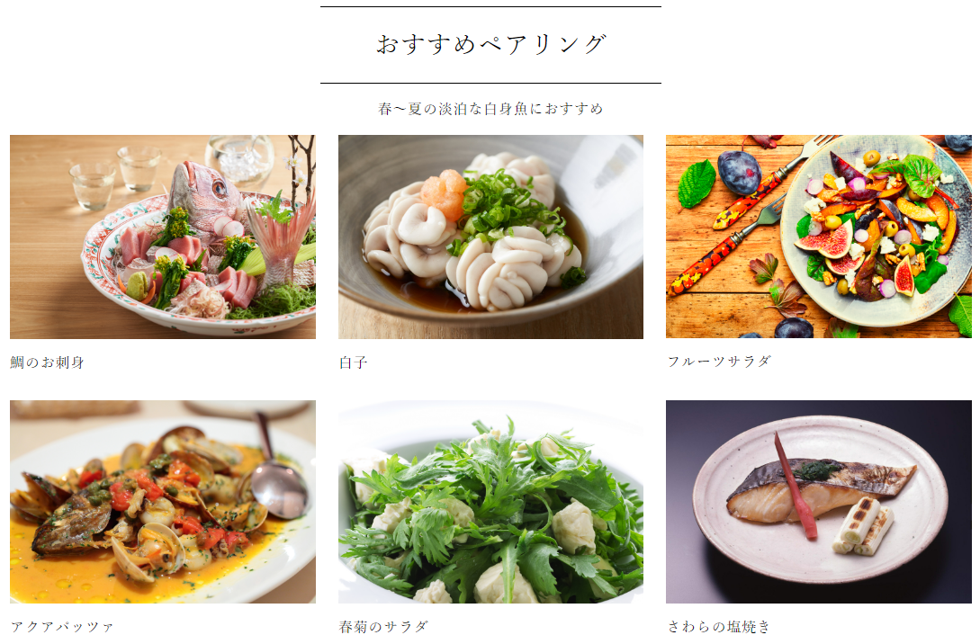 ・和食より洋食に合います。白ワインと同じようにお楽しみいただけますので、是非ワイングラスに注いでフルーティな香りと共にお楽しみください