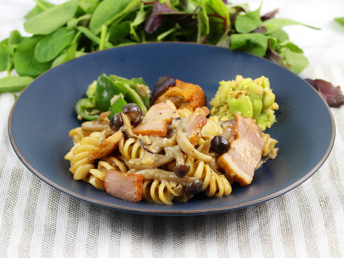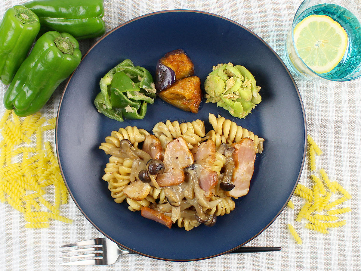 - 【食数限定メニュー】厚切りベーコンときのこのパスタ