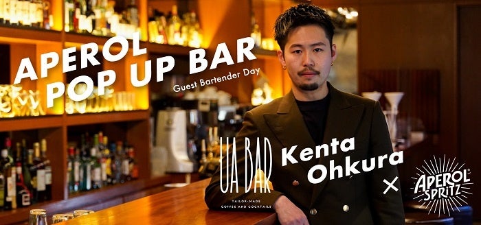 アペロールとUA BARは、昨年よりコラボレーションがスタート。ランチからディナー、そしてしっとりとした大人のバータイムまで、様々なシーンで利用できる「UA BAR」と、アペリティーボタイムからデートまで、どんなシーンにも似合うイタリアNo.1カクテル「アペロールスプリッツ*」がコラボすることで、カクテルを楽しむ心地よい時間を提供してきました。今回のゲストバーテンダーDAYでは、UA BARのバーテンダー大倉氏が、渋谷APEROL POP UP BARに一夜限りで登場。「アペリティーボ」と「渋谷」というエリアを意識した、様々な方が楽しく気軽に飲めるオリジナルカクテルを提供していただきます。