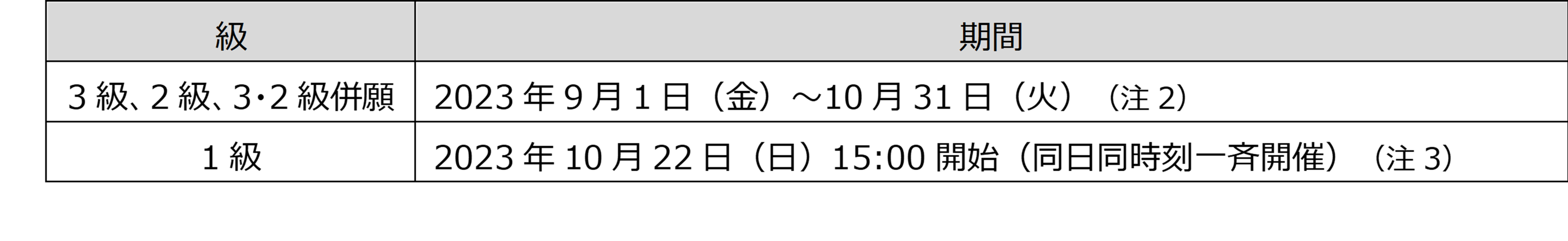 (注2):3級及び2級の受検日は上記の期間内で選択が可能です。