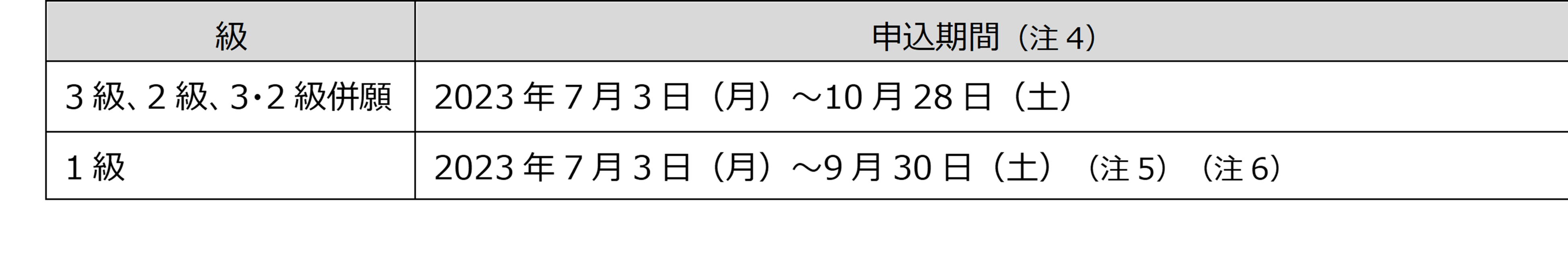 (注6):1級は2023年9月29日(金)までに2級に合格された方がお申込いただけます。