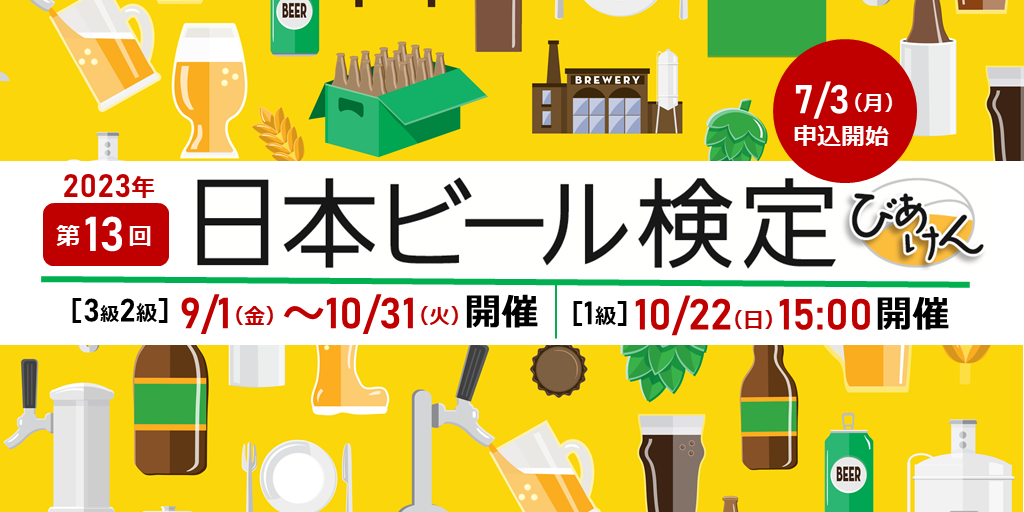 一般社団法人 日本ビール文化研究会(所在地:東京都渋谷区、代表理事:菅 敏浩)は、本年9月から2か月間にわたり開催する第13回「日本ビール検定」(愛称:びあけん)の実施概要を決定しました。前回に引き続き今回も受検者の利便性の観点から、CBT方式(コンピュータ試験方式)(注1)で開催します。受検の申し込みは7月3日(月)からインターネットで開始します。