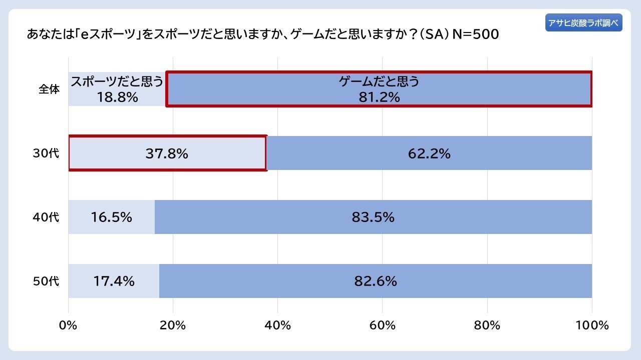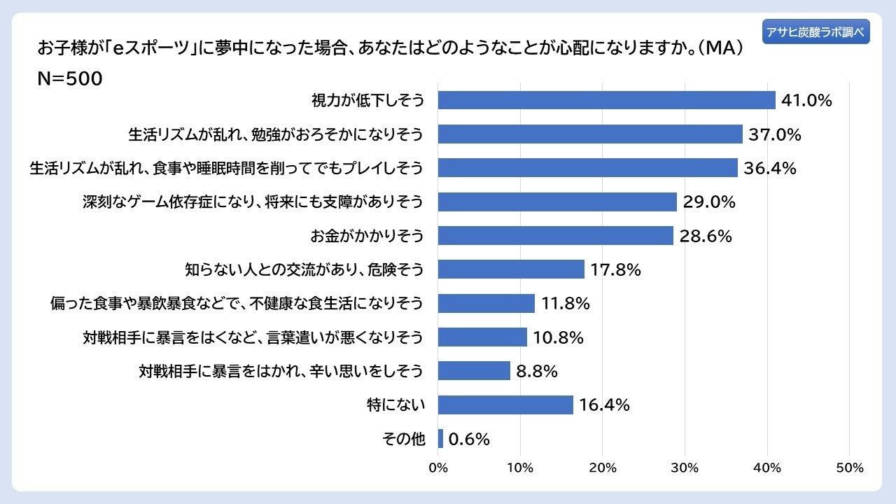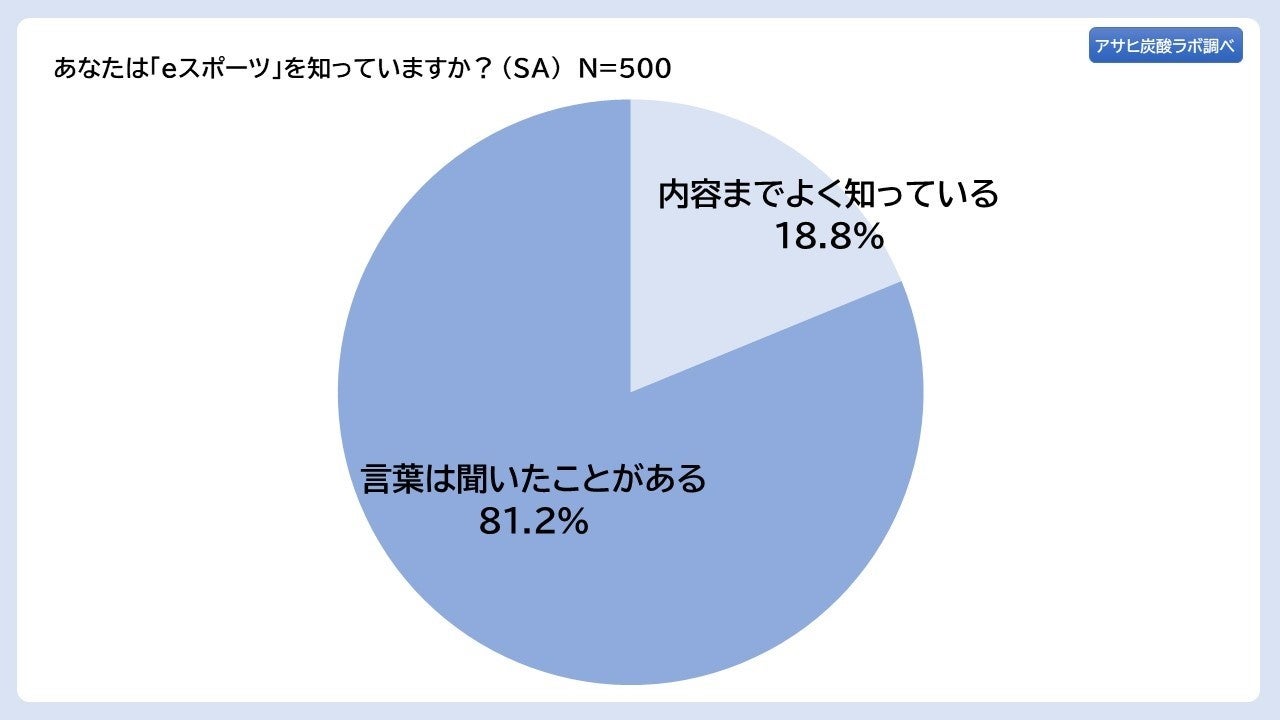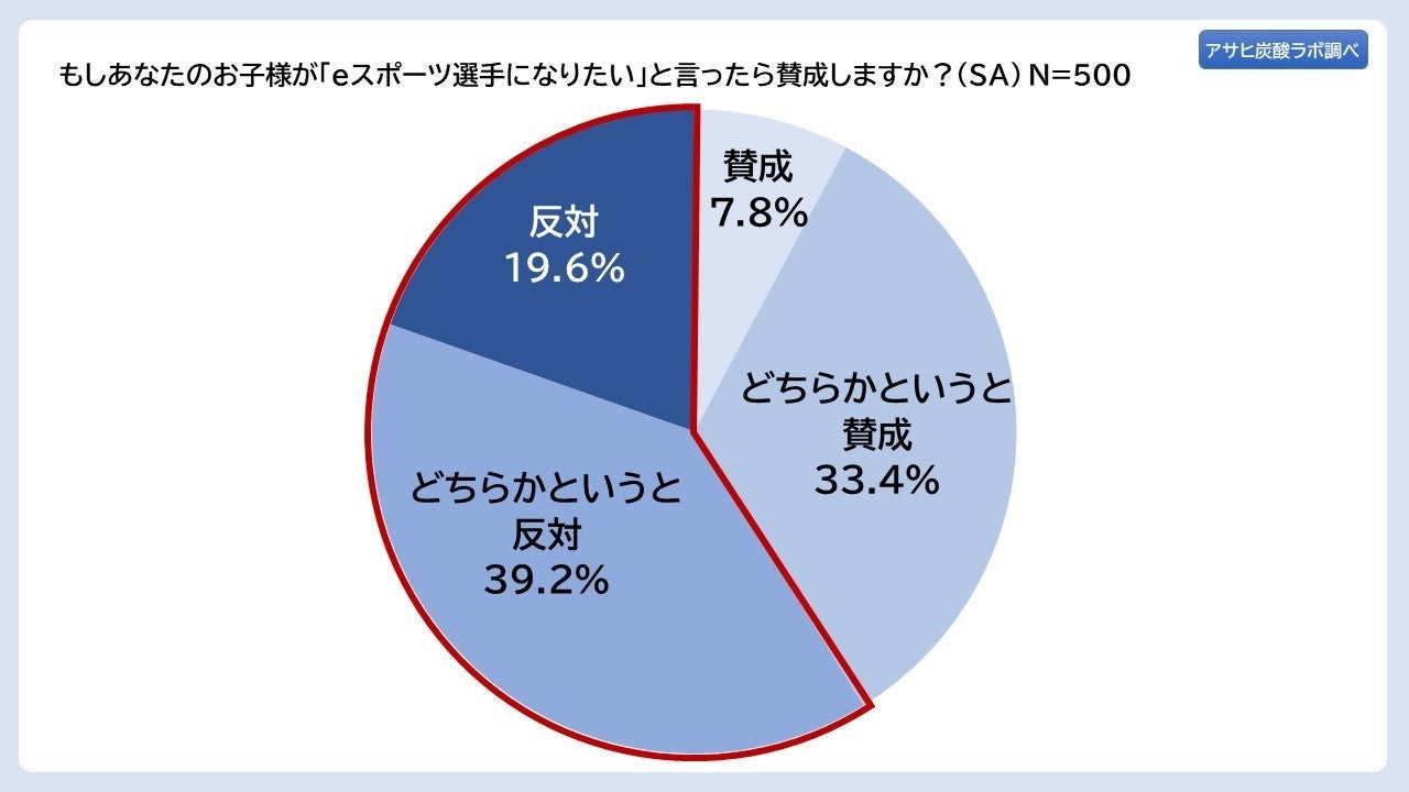 アサヒ炭酸ラボでは、炭酸水の効果が、盛り上がりを見せるeスポーツの健全な普及に寄与する可能性を探るべく、親世代が子どもに人気のeスポーツについてどのように考えているかを調査しました。
