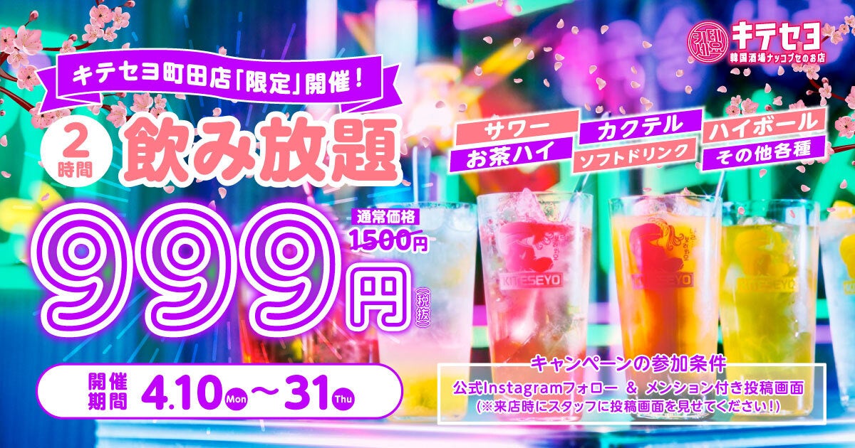 「”楽しい”でつながる世界をつくる」を経営理念とする飲食企業の株式会社ファイブグループ(本社:東京都武蔵野市 代表取締役社長:坂本憲史 以下ファイブグループ)は小田急線町田駅から徒歩10秒の「韓国料理酒場ナッコプセのお店 キテセヨ 町田店」にて、春限定の飲み放題キャンペーンを実施します。