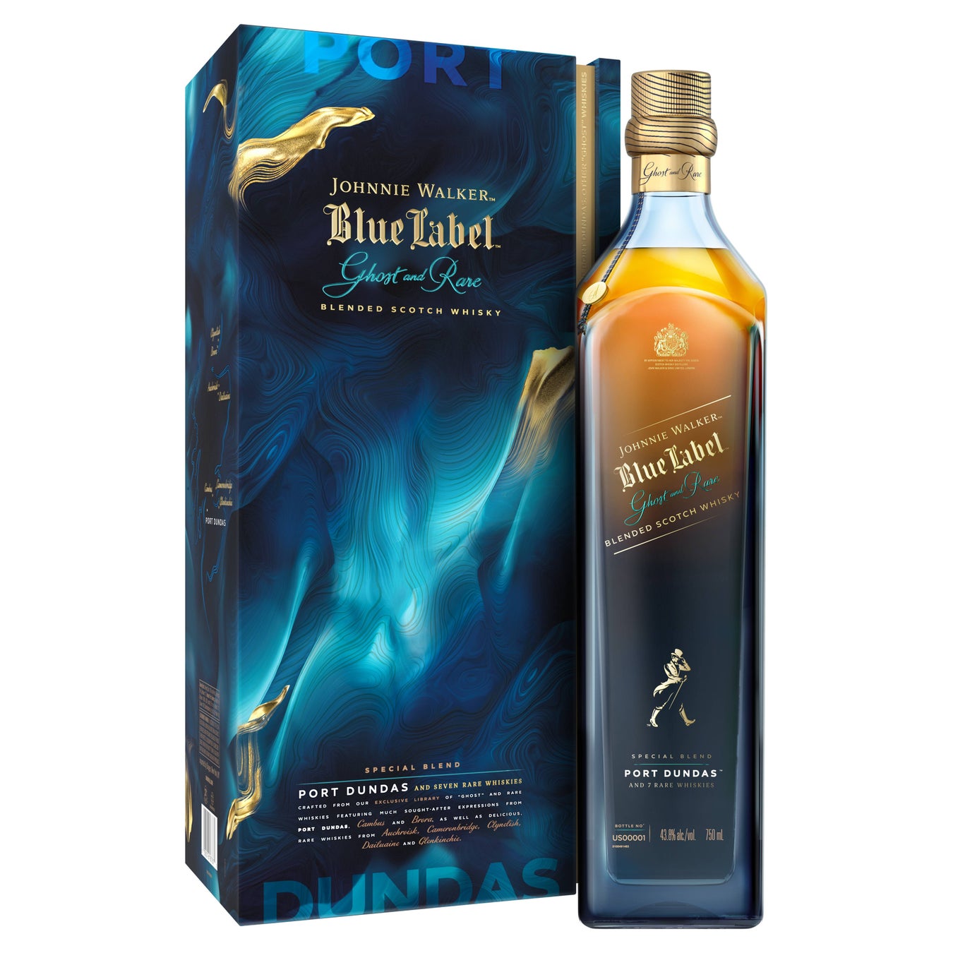 今回発売する「ジョニーウォーカー ブルーラベル ゴースト&レア ポートダンダス」は、1811年に創業し約200年に渡ってブレンデッドウイスキー黄金期を支えた「ポートダンダス」を含む、3つの閉鎖した蒸留所(ポートダンダス、カンバス、ブローラ)と、希少な5つの蒸留所(キャメロンブリッジ、グレンキンチー、クライヌリッシュ、ダルユーイン、オスロスク)の原酒をブレンドした幻の逸品です。
