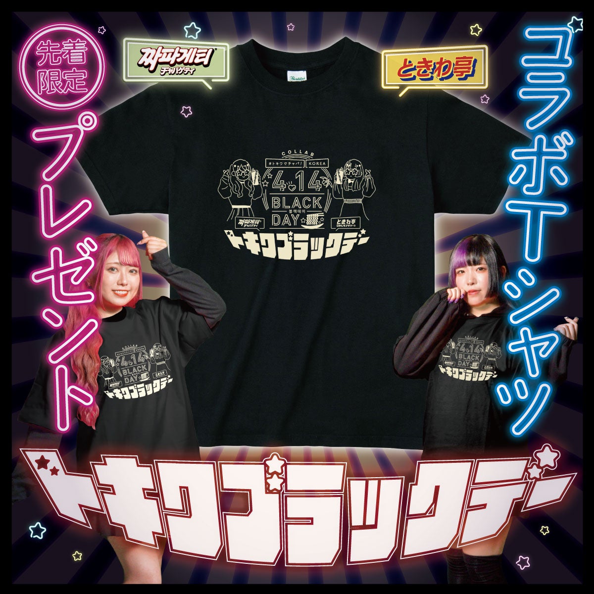 ワブラックデーと農心とときわ亭のオリジナルコラボTシャツ。各店先着30名様にプレゼントします。