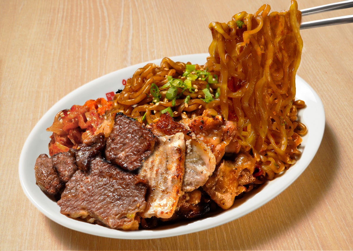 この度、若者を中心にブームが絶えない韓国グルメの中でも、韓国ドラマや映画にも登場し日本でも絶大な支持を誇る韓国風ジャージャー麺の即席麺「チャパゲティ」とコラボレーションします。韓国では4月14日は「ブラックデー」と呼ばれ、2月14日のバレンタインデー、3月14日のホワイトデーに続く記念日として定着しており、恋人がいない男女が自虐的に黒い服を来て黒い食品を食べることから始まった記念日で、現在では黒いソースのかかった韓国風ジャージャー麺を食べる日としても親しまれています。今回のコラボでは、4月13日(木)から4月28日(金)までの期間限定で、渋谷店、池袋東口店、横浜西口店、相鉄五番街店、大宮店の5店舗限定で「チャパゲティ」を販売します。トッピングには、「旨とろ炙りカルビ」「豚カルビ」「鶏またぎ」「キムチ」などをご用意し、お好みでアレンジして楽しめます。