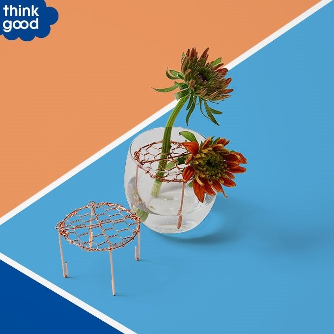 京都で130年以上の歴史を誇る京金網の老舗<鳥井金網工芸>。地元の料理屋さんからの注文も多く、店のコンロに合わせて焼き網を誂えるため、銅の切れ端が生まれてしまいます。その端材を使ってつくられているのが「花立て」。花器やグラスに入れ、剣山代わりに使うことが出来る便利なアイテムです。<鳥井金網工芸>の店頭では30年以上前から販売されているという隠れたロングセラー。今回、京都のれん市ではじめてご紹介します。