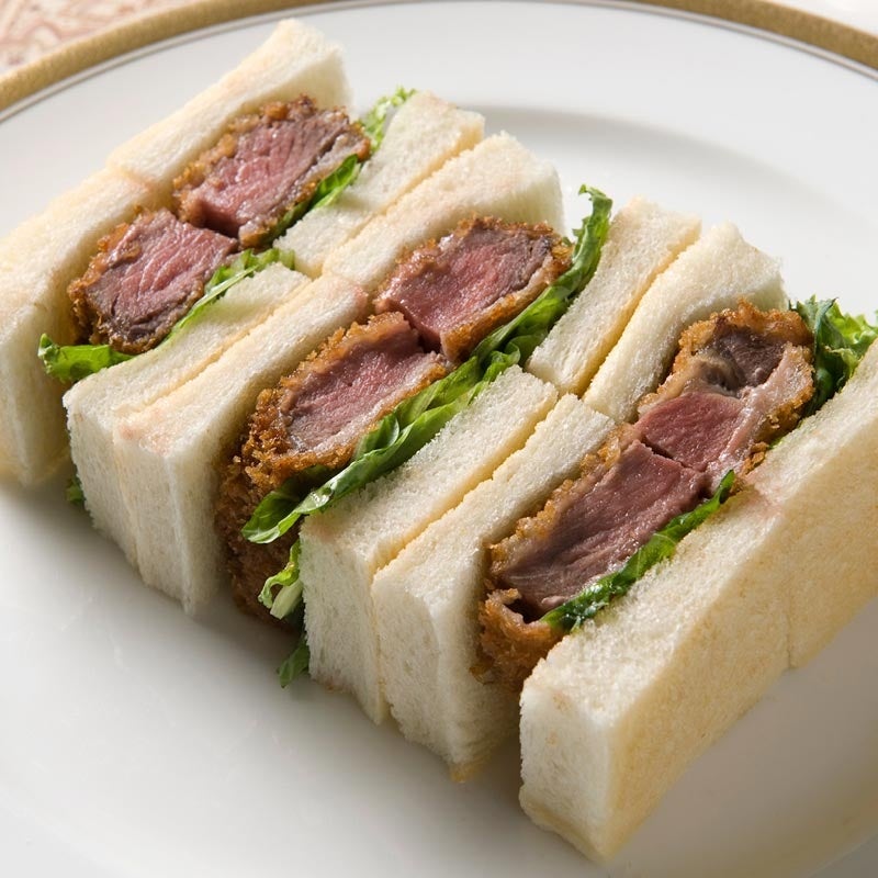 肉厚でやわらかい牛ヒレ肉のカツに、肉の旨みを引き立てるデミグラスソースを加えた豪華なステーキカツサンド。