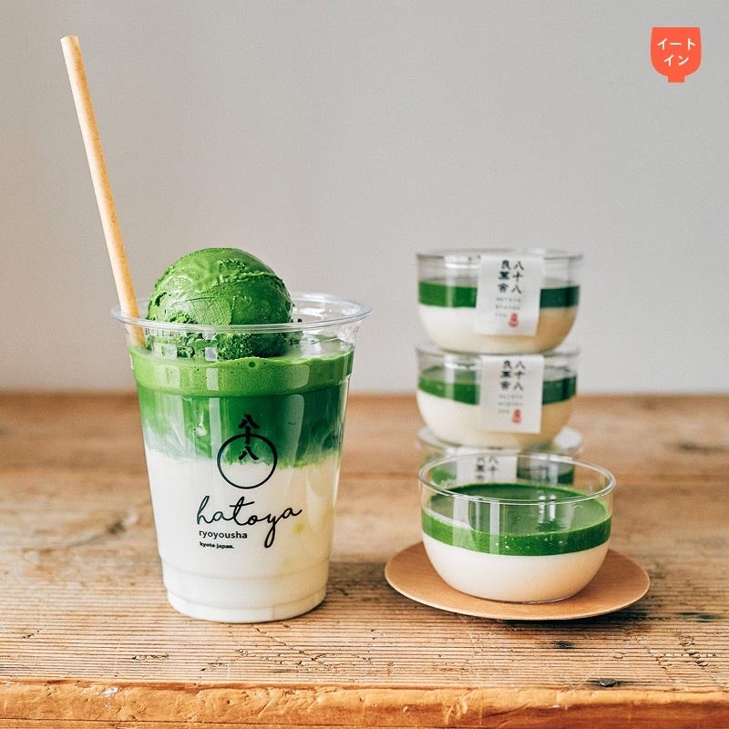 宇治産の手摘うじひかり品種100%使用の抹茶ラテフロートは、苦味や雑味が極端に少なく甘い香りや旨味が詰まった、抹茶の概念が覆る1杯。開店当初からたくさんのお客さまにご好評いただいている八十八プリンは、ミルクプリンと特製抹茶ソースの相性が抜群。甘さ控えめで苦味少なく濃厚な味わいです。