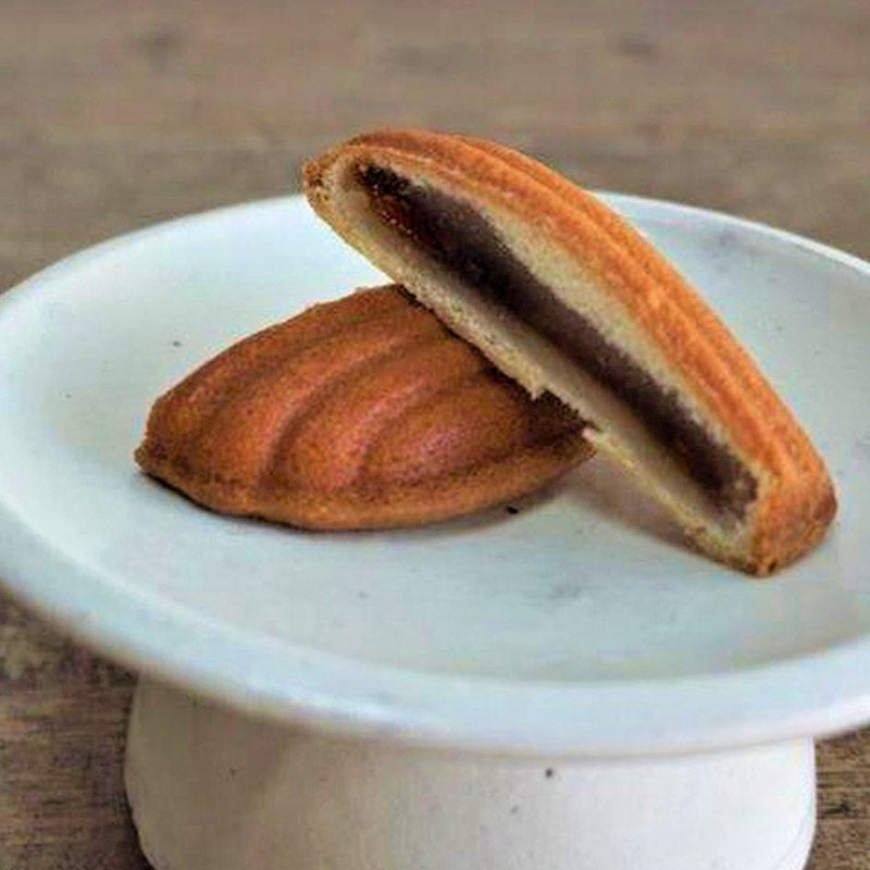 バターを配合したなめらかな生地で、みたらしのたれと白餡を包んで焼き上げました。見た目は洋菓子のような、和菓子です。