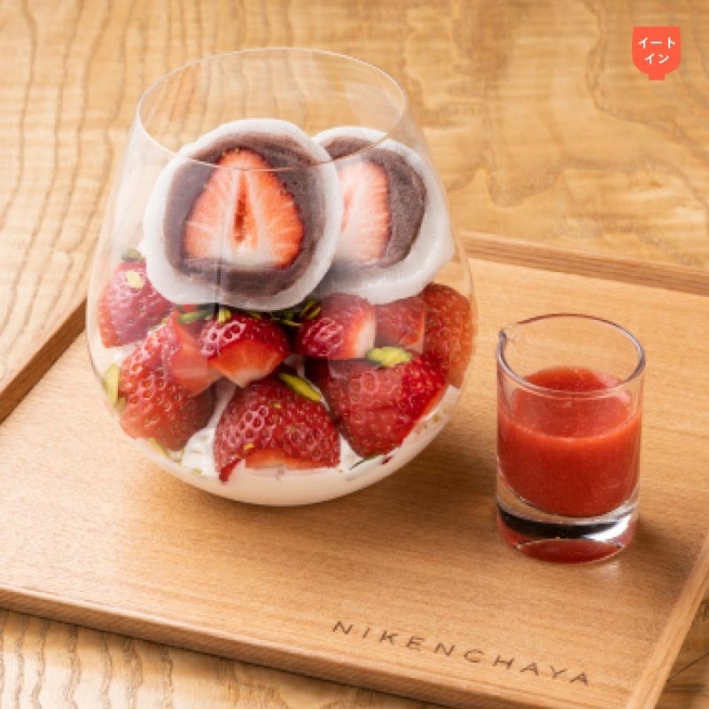 京都のブランド苺「京の雫」をふんだんに使った<二軒茶屋>の人気メニューです。