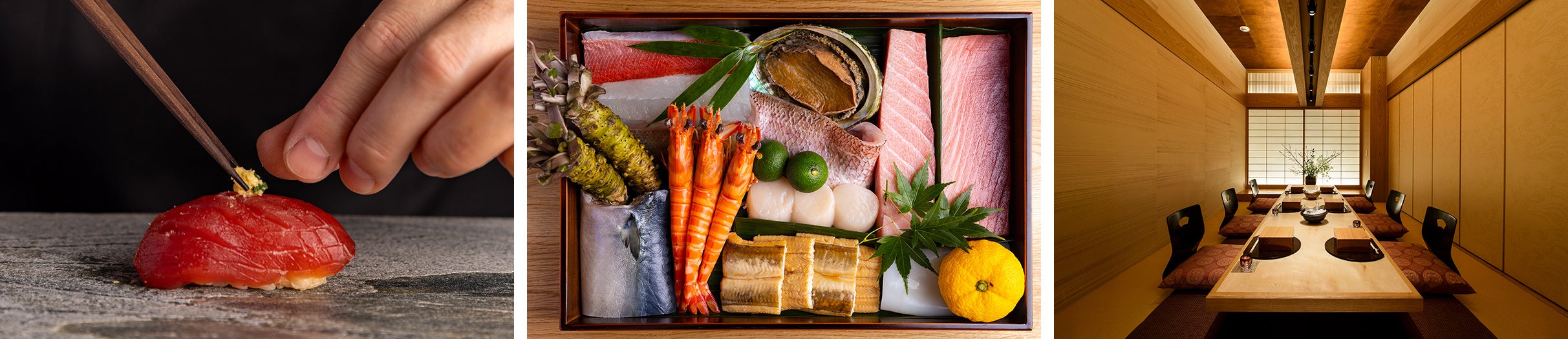2023年1月、銀座にオープン。上質な寿司をよりカジュアルに、より贅沢にお楽しみいただける寿司店です。「板前オープンスクール」寿司職人コースと連動し、一定のレベルに到達した職人はベテラン職人とともにカウンターに入り、実践で腕を磨きます。