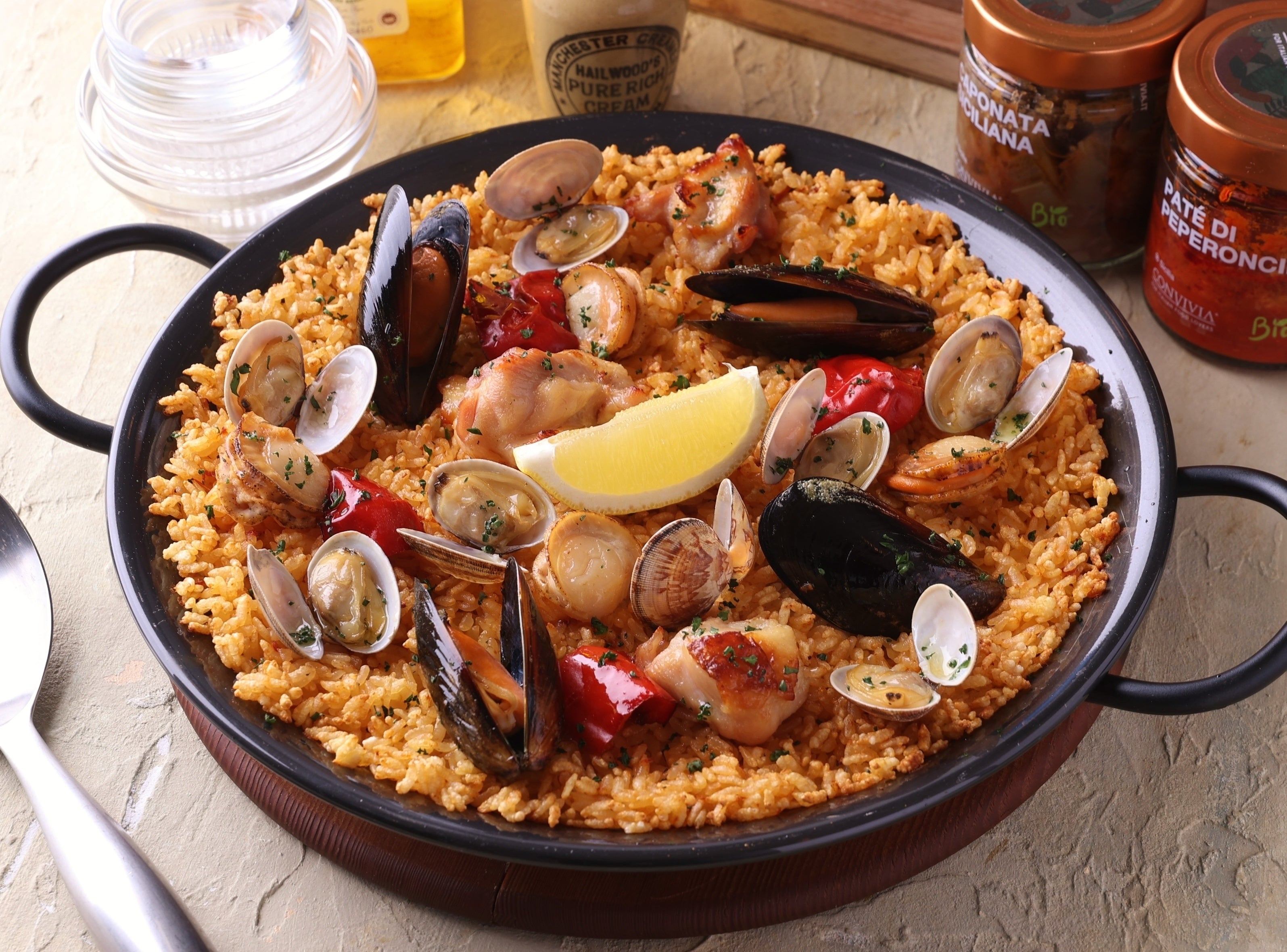 ボリュームも旨みもたっぷりの具沢山パエリアをぜひお試しください。