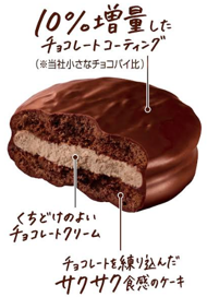 チョコレートの濃厚な味わいを体感できるようにチョコレートコーティングを10%増量しています。