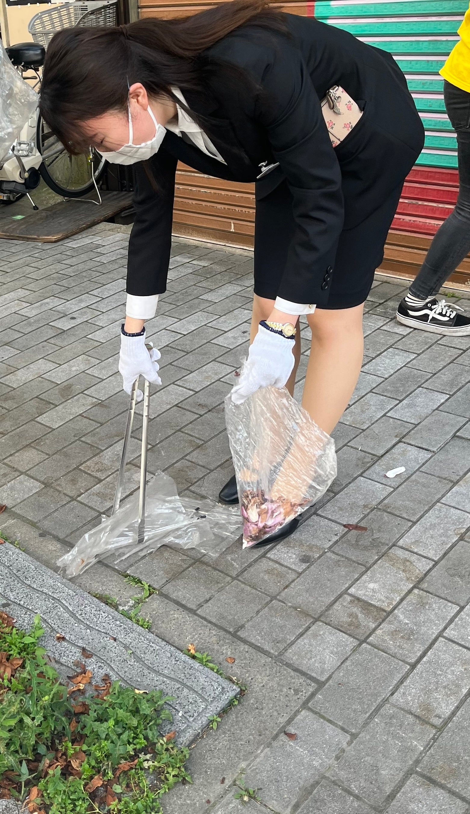 〇社員みんなで街をきれいにして、気持ちがよかった。ゴミが落ちているのが当たり前ではなく、日頃からゴミがない街であってほしいと思う。今後社会人として、常に感謝を忘れず、人に元気を与えられる人間になりたい。