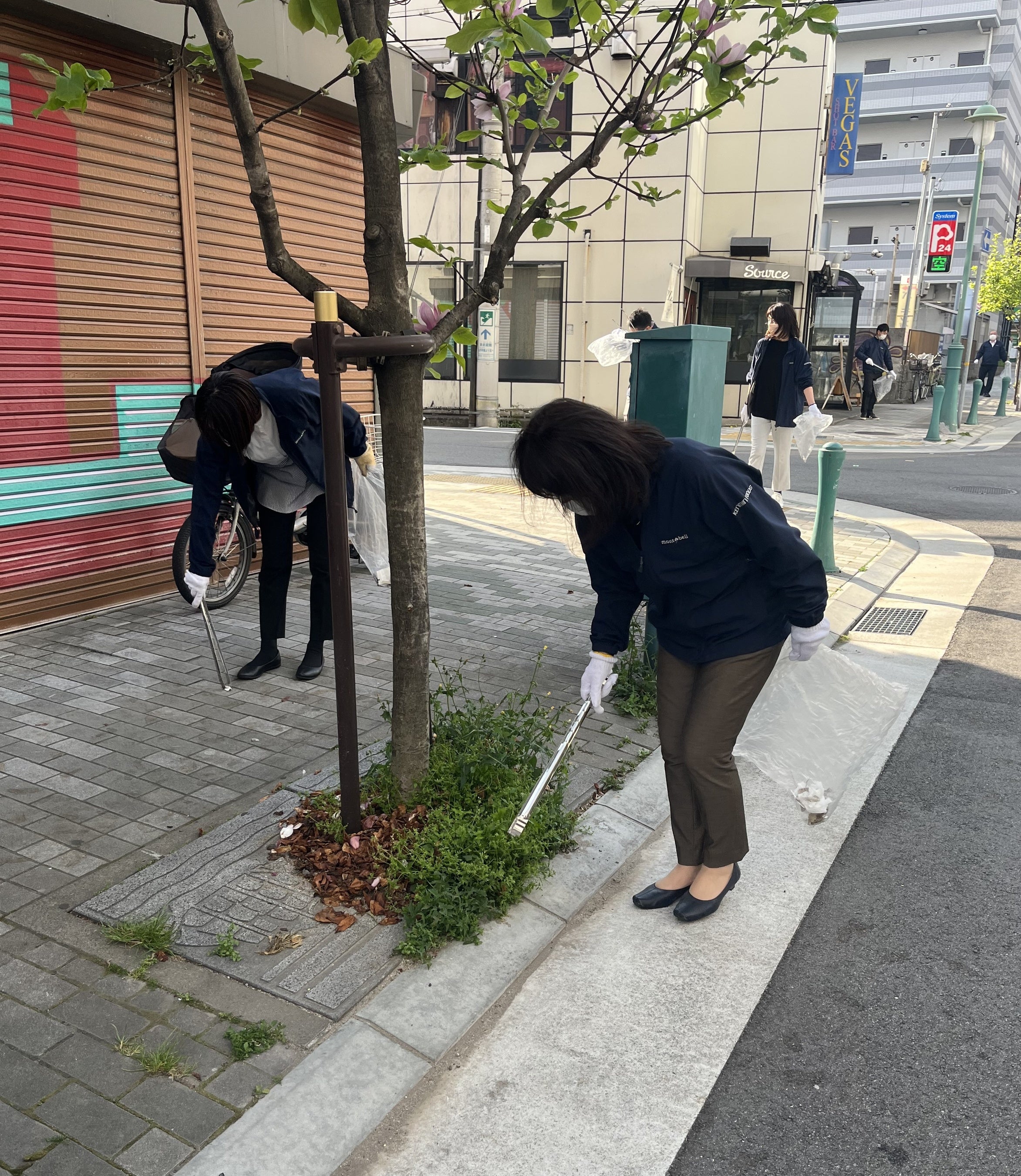 社長の高村は新入社員に対し「地域の人から感謝され、愛される人間になってほしい」と激励し、会社近辺の清掃活動を感謝の気持ちをもって実施しました。