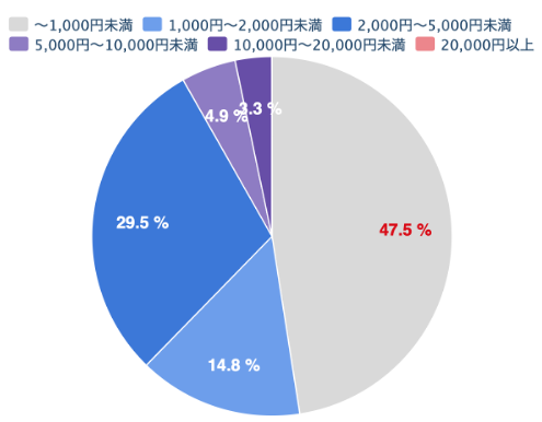 ◯〜1,000円未満 ◯1,000円〜2,000円未満 ◯2,000円〜5,000円未満 ◯5,000円〜10,000円未満 ◯10,000円〜20,000円未満 ◯20,000円以上