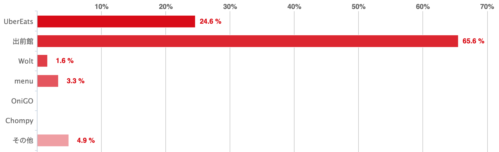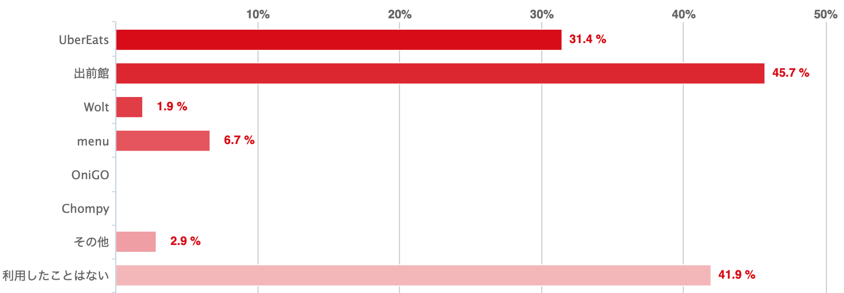◯UberEats ◯出前館 ◯Wolt ◯menu ◯OniGO ◯Chompy ◯その他 ◯利用したことはない