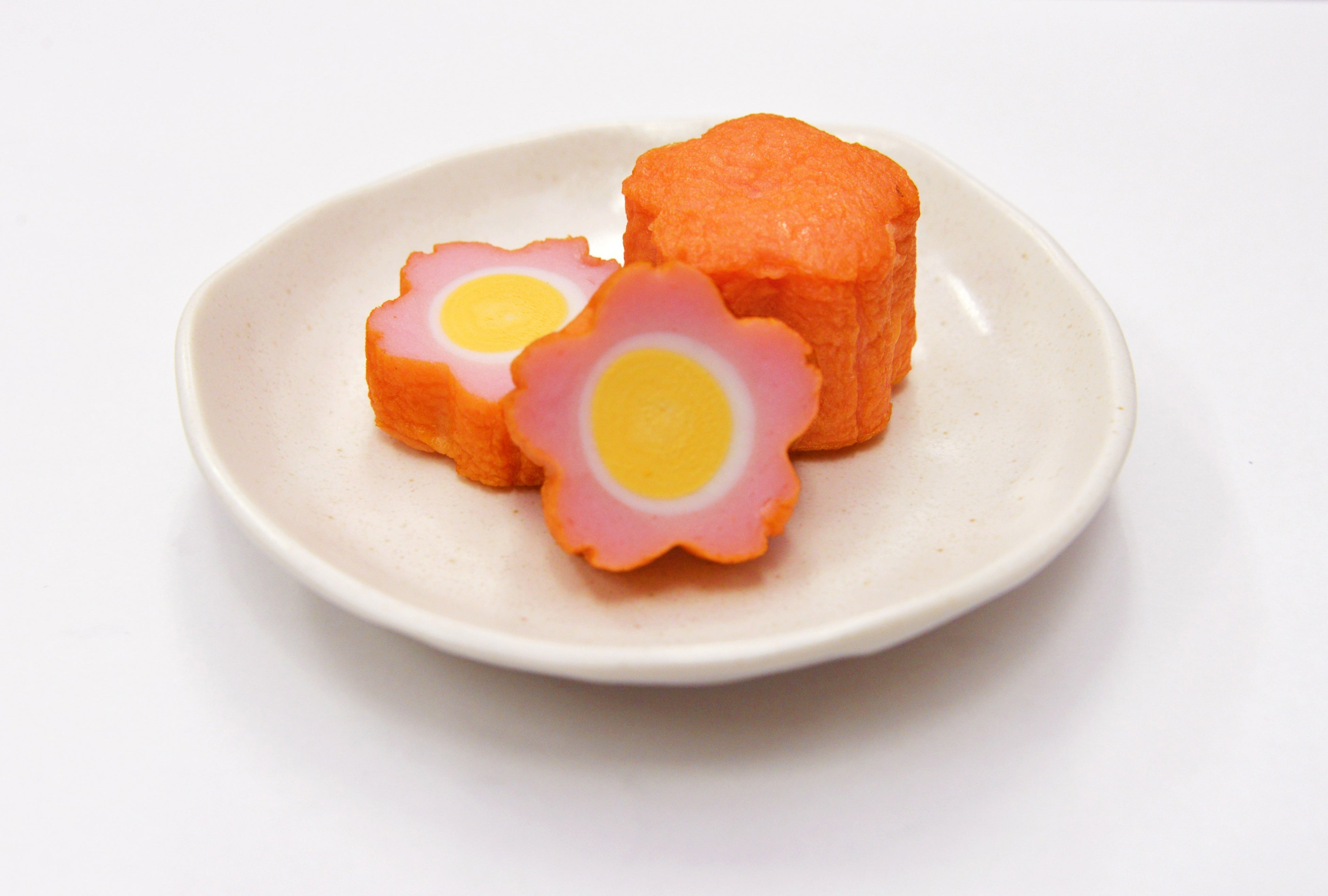特徴 :中にうずらの卵が入っており、切った断面が桜の花のように見え、見た目と味が共に楽しめる商品