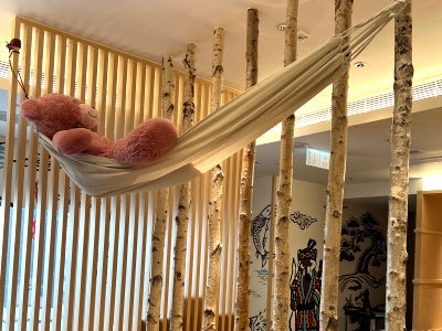 店内は、フォトスポット満載な日本のくまちゃん温泉のデザインをそのままに、北海道を表現した壁画をバックに、かわいい“くまちゃん”の世界が広がっています。