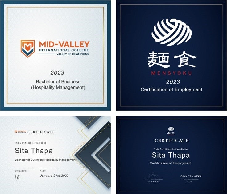 この度、ようやくビザを取得できたことから、来日し入社式を執り行うことができました。当社は「単位取得」と「日本での就職」がセットになった当プログラムの提供により、ネパールの若者の就労機会の創出と、日本の飲食業の人材不足解消・サービスの質の向上を図ることができると考えています。