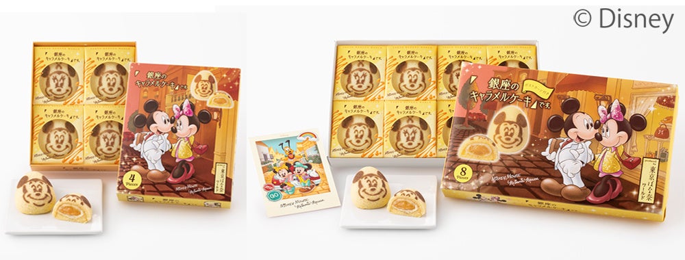 『ミッキーマウス&ミニーマウス/「銀座のキャラメルケーキ」です。』はキラキラ輝く街の様子や2人の笑顔に思わずきゅんとしてしまうキャラメルケーキ。