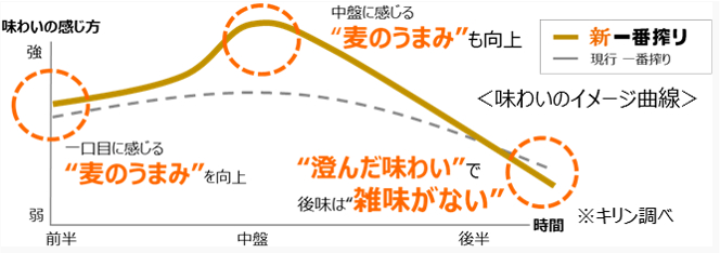 「一番搾り」は、1990年の発売時から「おいしいビールのもたらすうれしさで日本を明るくする」という志のもと、麦のおいしいところだけを搾る「一番搾り製法※4」でつくるビールとして多くのお客様から好評をいただいています。今回、麦本来の澄んだうまみを最大限引き出すことで飲みやすく飲み飽きない味わいへ進化させました。