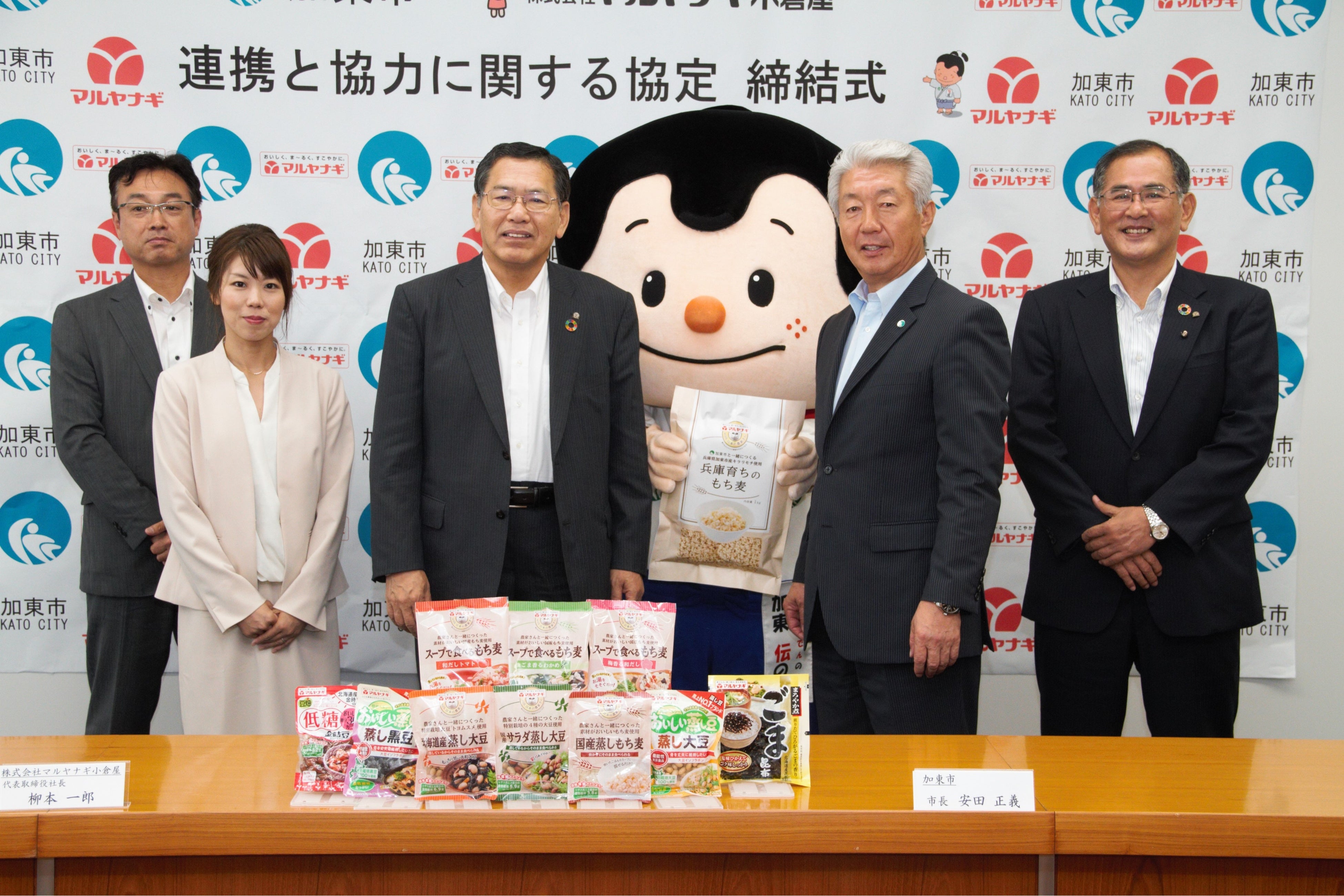 JAみのりとの加東市内でのもち麦栽培の進展を受け、マルヤナギは加東市産もち麦の特産品化、もち麦を活用した町づくりの推進等への協力を加東市へ申し入れ、加東市もそれを歓迎するかたちで「SDGsを踏まえた地域活性・市民の健康増進・農業振興等の連携協定」を締結する運びとなりました。