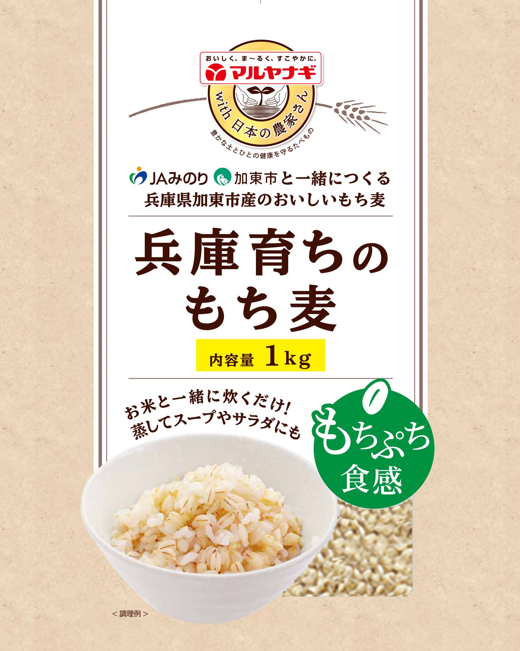 さらに加東市、JAみのり、兵庫県北播磨県民局、マルヤナギで「加東市もち麦活用協議会」を立ち上げ、もち麦栽培の振興と特産品化、商品化、市民の健康づくりサポートなど、様々な形で地域を盛り上げています。