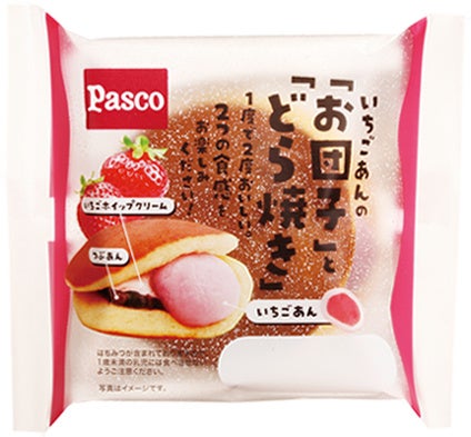 いちごあんを包んだ団子・北海道小豆のつぶあん・いちごホイップクリームをどら焼き生地ではさみました。